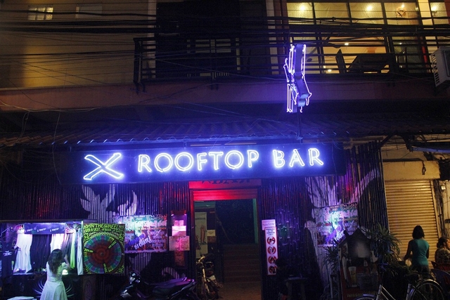 Начинается дождь. Азиатский, такой редкий, тёплый зимний дождь. По дороге на автовокзал заходим в ещё один бар с вывеской «Х rooftop bar». У входа припаркованы мотобайки, а напротив китайские туристы сидят, опустив ноги в аквариум с рыбками гарра руфа. Лестница ведёт на второй этаж, где всё залито светом мадженты и фиолетовым. Несколько зелёных пятен бильярда и сцена проплывают мимо. Мы поднимаемся ещё выше. На крыше неожиданно для меня оказывается хафпайп. Куча кхмерских тинэйджеров рубятся в кикер, и огромная неоновая вывеска X-bar светится над залитыми огнями городом, полным ночной жизни.