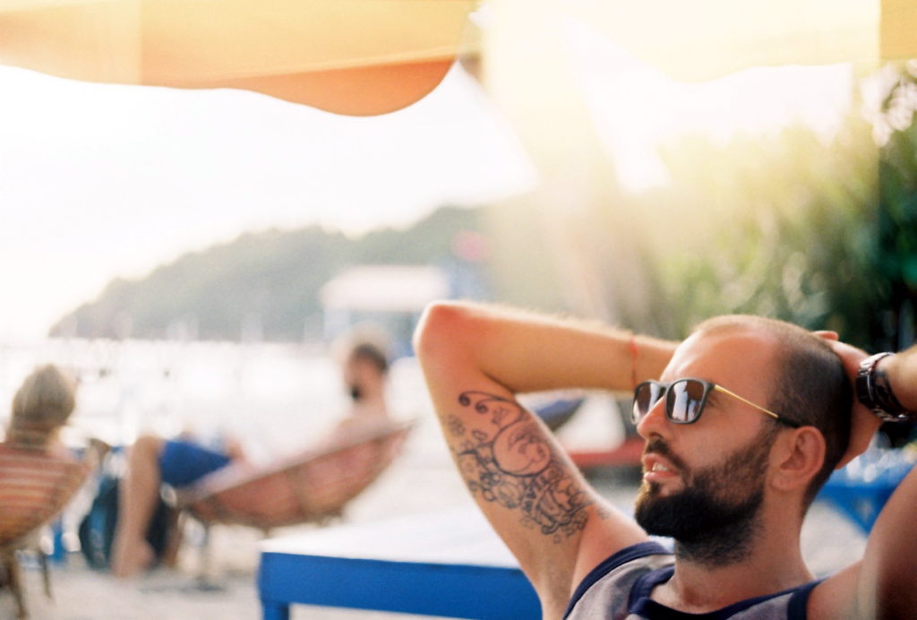 Весь пляж разделён на полосы с кафе и барами. Полно свободных столиков, выставленных вместе с лежаками и зонтиками. Мы садимся на лежаки, тут же подходит официант, как будто только и ждал нас. Заказываем целый кувшин холодного пива. А пару минут спустя совершенно спокойно приходит чувак и толкает косяк.