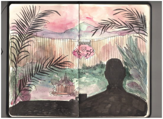 Утро. Я пью на веранде заваренный по-простому, прямо в кружке кампотский кофе. В углу двора есть небольшой буддистский храмик, внутри…